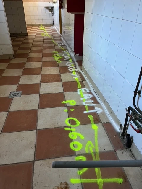 Nous avons réalisé un traçage complet des réseaux enterrés à l’aide de matériel de détection professionnel. Les canalisations ont été repérées et matérialisées au sol par marquage, permettant de visualiser clairement leur parcours, leurs connexions et les points sensibles.